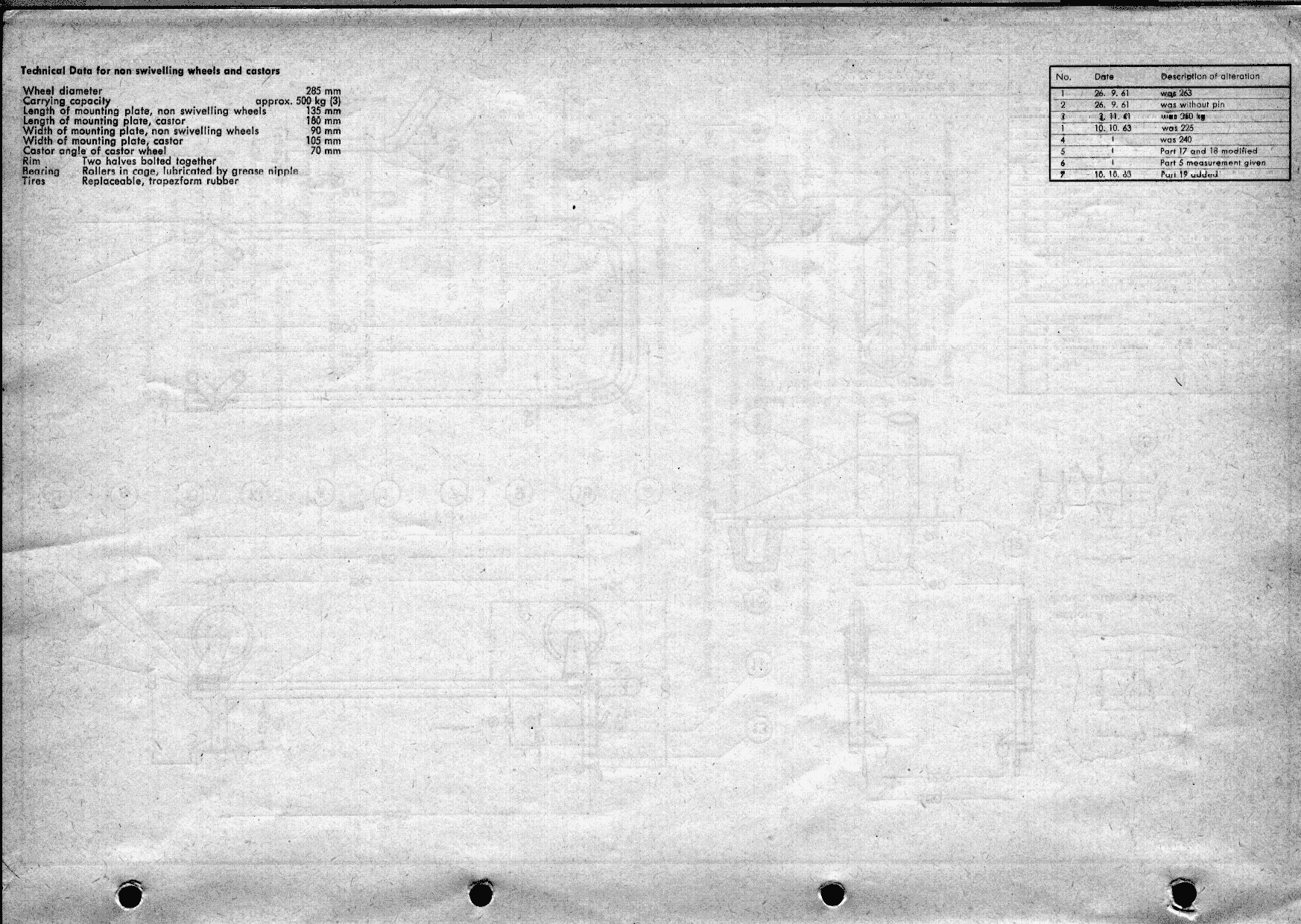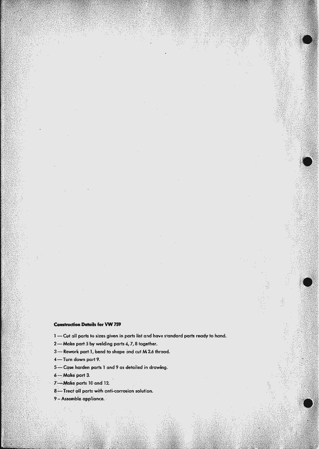 The table below is listed by tool number. Generally, the first page (160k to 250k) has photographs showing the tool by itself and in use. The last several pages are the blueprints (150k to 500k) for making the tool. On earlier tools, the second page is usually construction directions (100k to 150k) for the tool, but later tools don't have these directions - just blueprints.