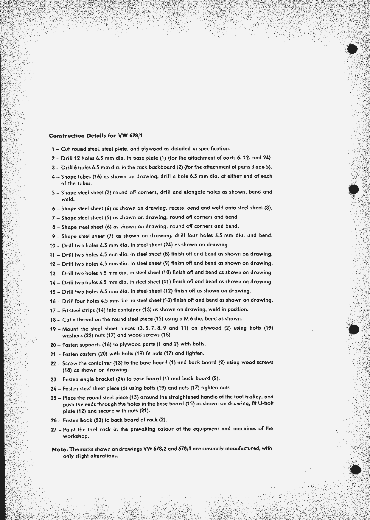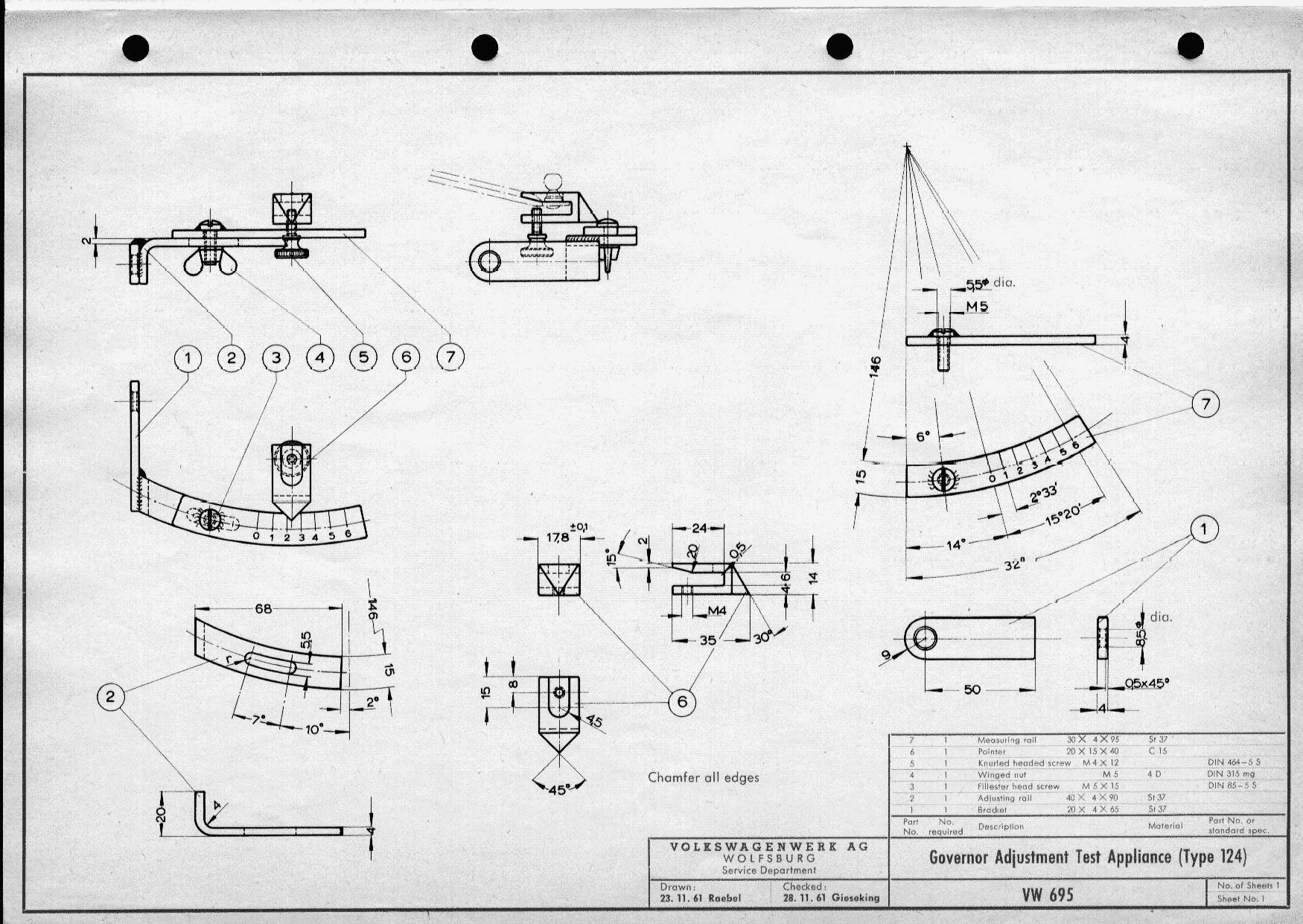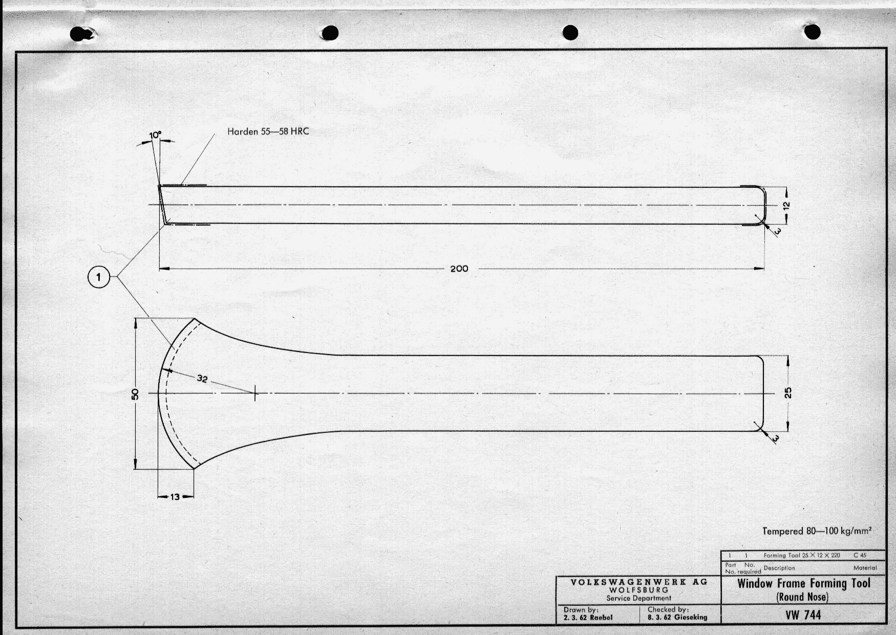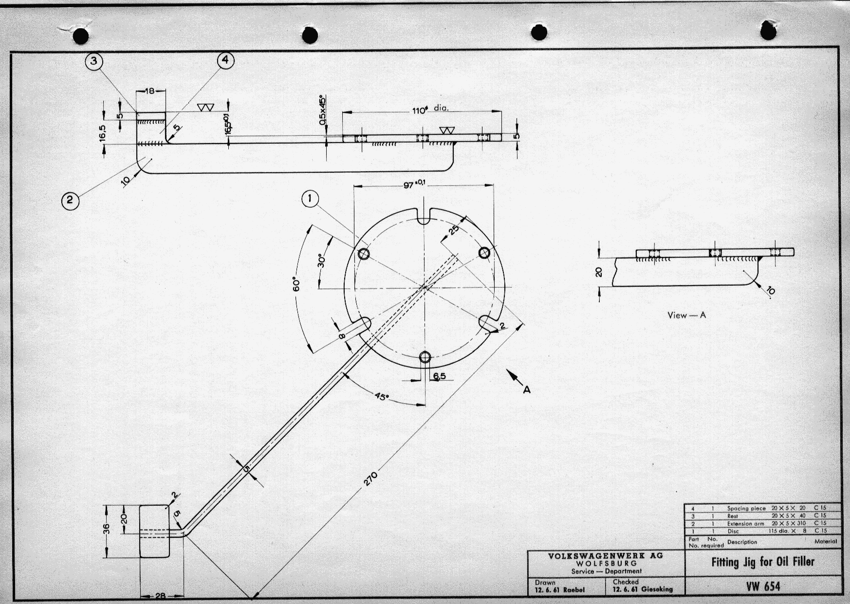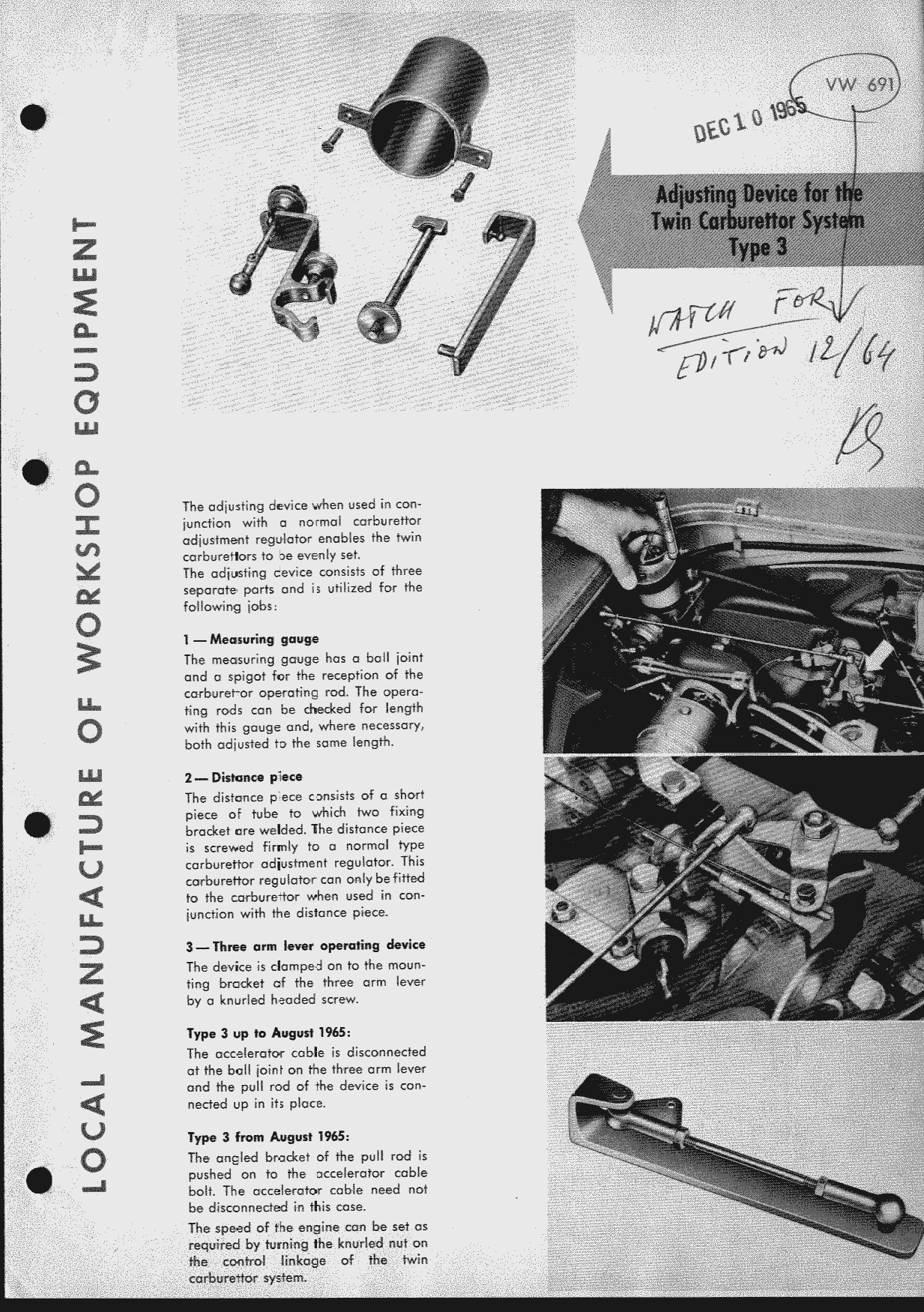 This manual contains descriptions and blueprints for over 100 special tools for working on air-cooled VWs -- everything from a body trolley for Type 1s to a headlight bucket alignment jig for Type 34s.