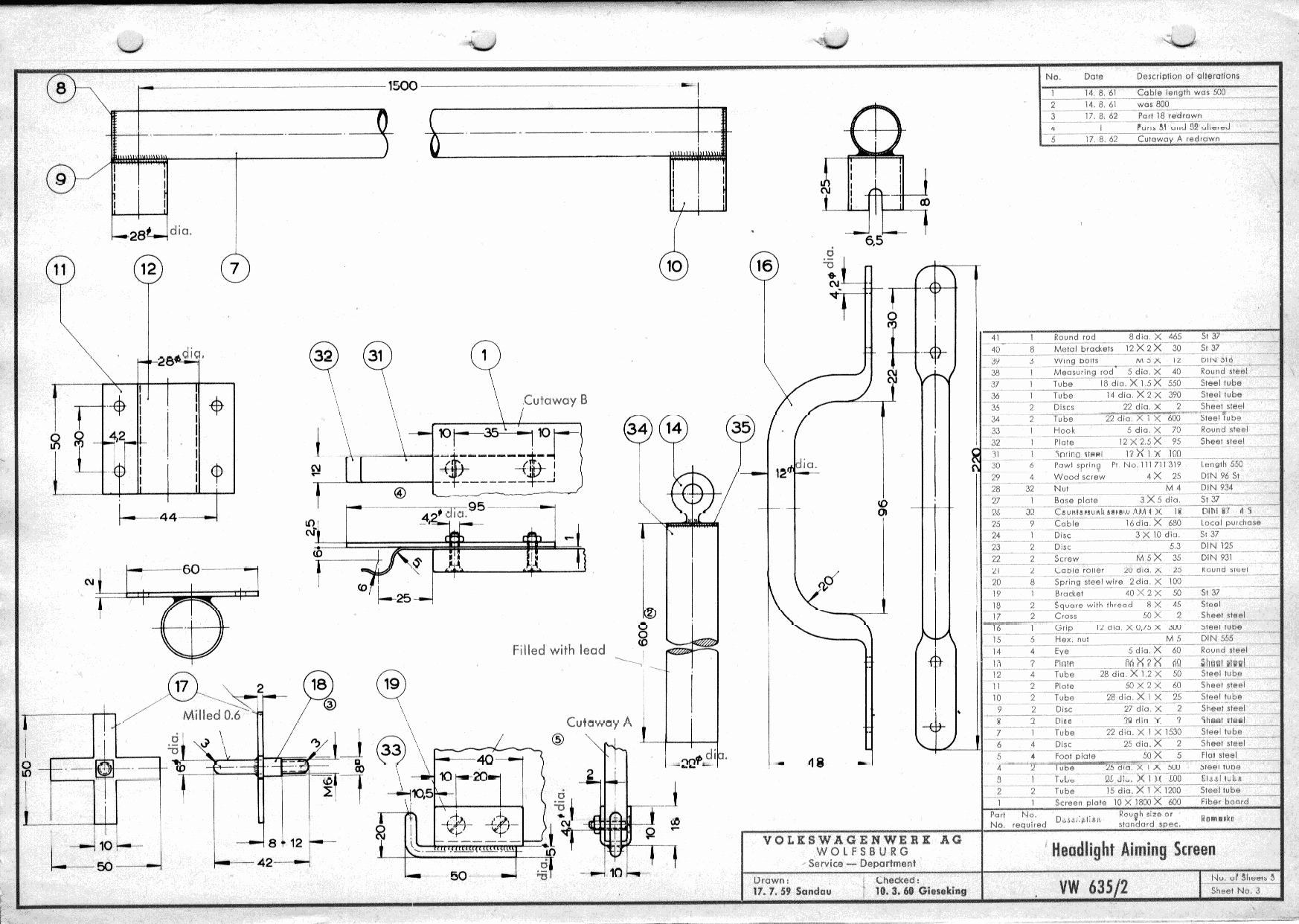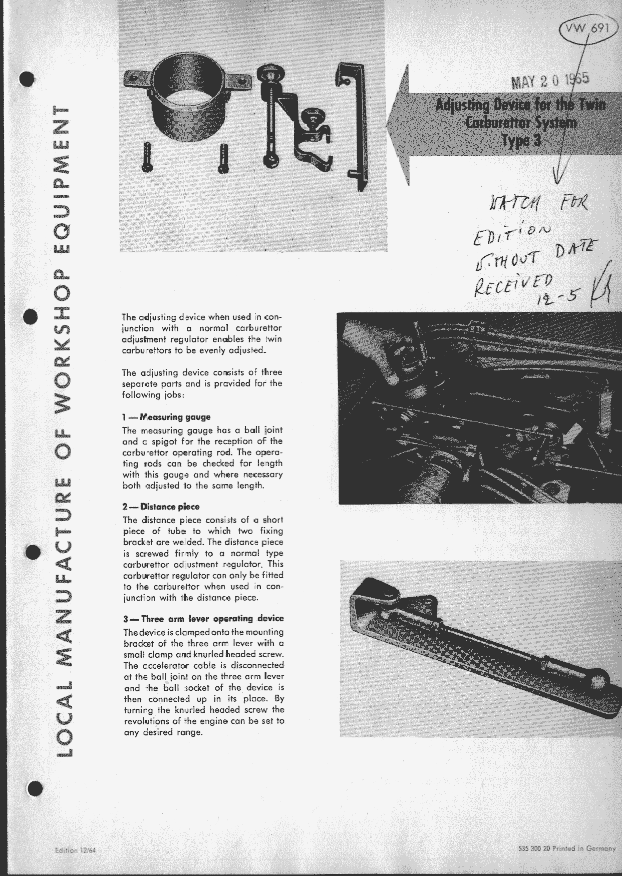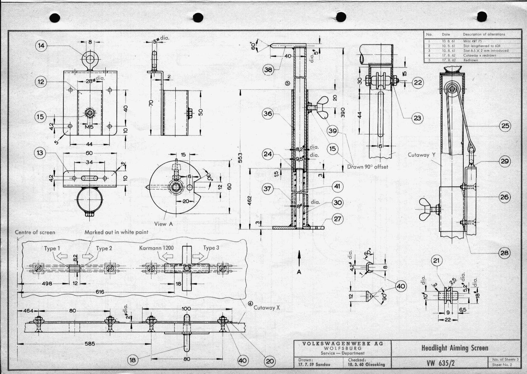 VW updated this manual about once a year, by issuing new pages and requesting the removal of old pages. This particular copy was first printed as a January 1955 edition amended to January 1962. A previous owner of the book kept it updated through September 1967.